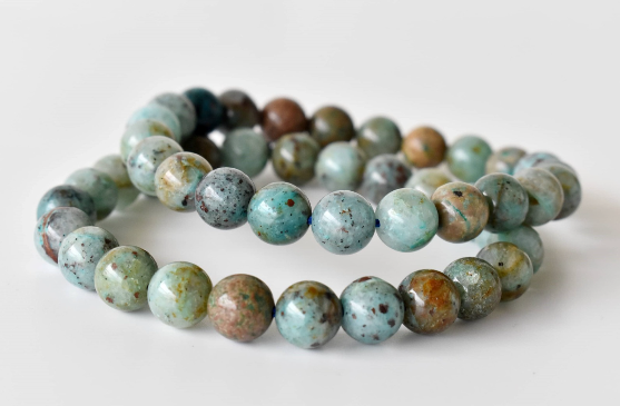 Hand-strung on a durable elastic cord, the Chrysocolla 8mm Bracelet offers comfort, flexibility, and long-lasting wear for most wrist sizes. It also makes a meaningful gift for loved ones, symbolizing tranquility, balance, and expressive energy.