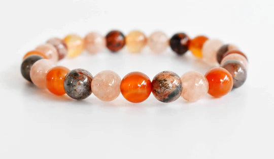 Handmade Sacral Chakra Crystal Bracelet – Carnelian, Sunstone & Fire Agate for Creativity & Passion