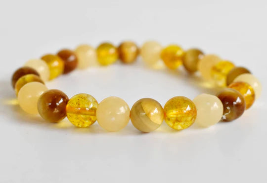Handmade Solar Plexus Chakra Crystal Bracelet – Citrine, Tiger’s Eye & Honey Calcite for Confidence & Personal Power