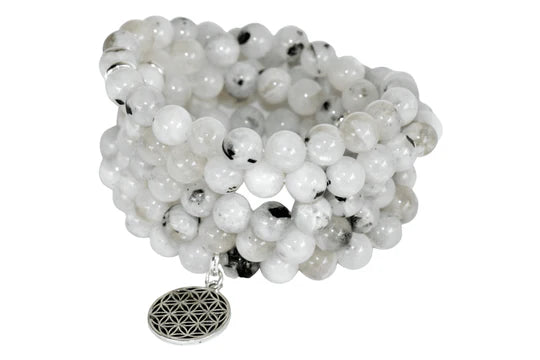 Awaken your intuition and balance your emotions with our Rainbow Moonstone Beads Mala Bracelet, crafted from genuine rainbow moonstone gemstones. Known as the “Stone of New Beginnings”, rainbow moonstone is revered for enhancing intuition, providing emotional stability, and offering protection from negative energies.