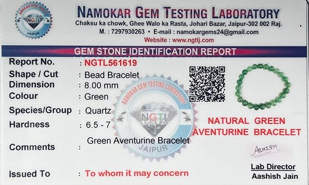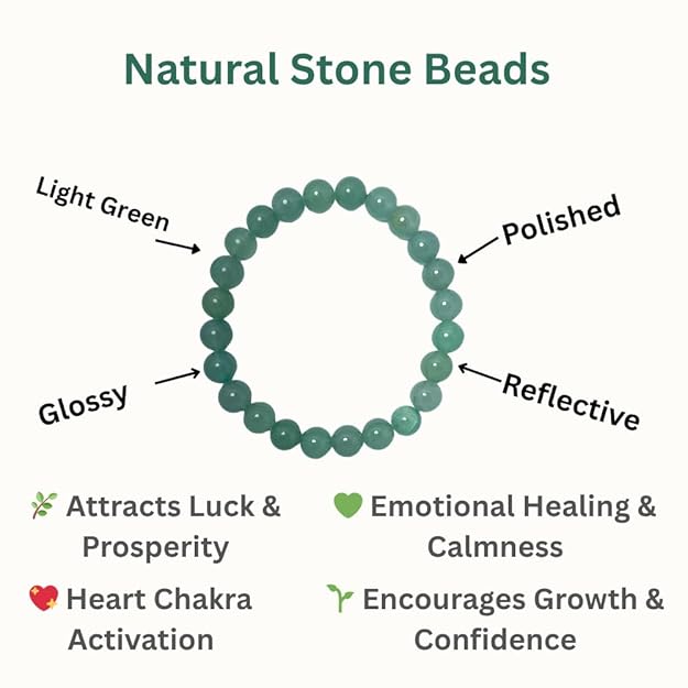 - Certified Natural Green Aventurine: Made with 100% genuine, certified Green Aventurine stones. Known as the "Stone of Opportunity", Aventurine is often used for attracting luck, prosperity, and emotional balance.