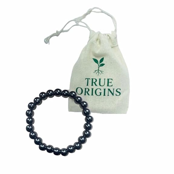 True Origins Certified Hematite Bracelet for Men & Women – Natural Healing Stone for Pain Relief, Energy Balance & Grounding – Adjustable Stretch Beads Jewelry