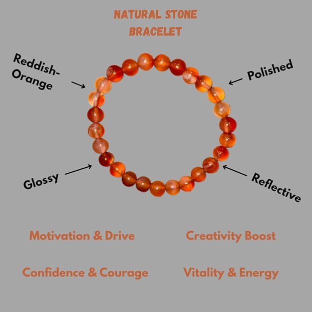 - Boosts Energy & Motivation Known as the “Stone of Action,” carnelian enhances vitality, drive, and enthusiasm for daily life.